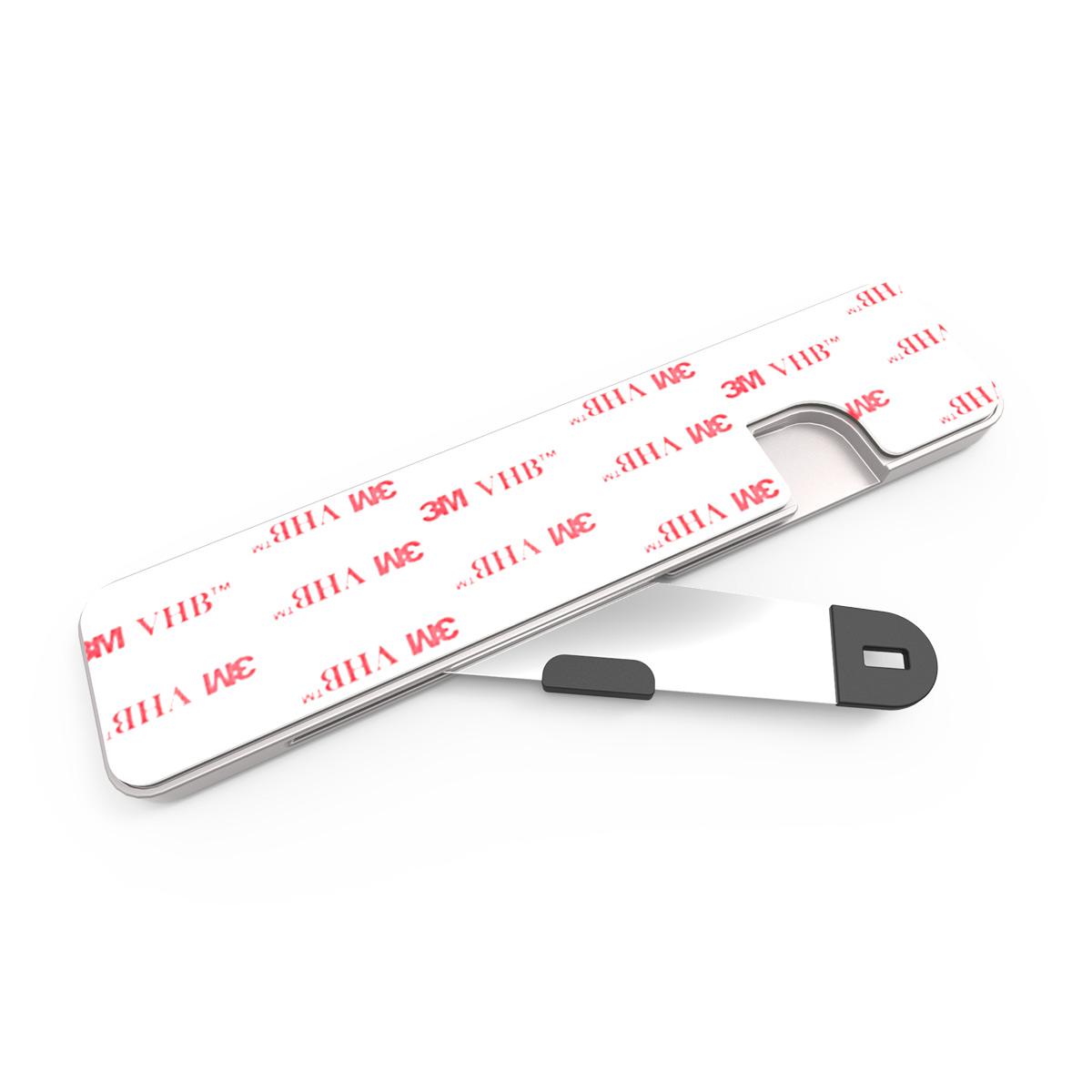 The Blade is a universal lock slot adapter designed to secure any MacBook or laptop with an ultra-strong retractable locking slot. With the motto «No Slot – No Sweat,» the adhesive bracket attaches to any device with a flat surface area of at least 7 inches, incorporating a standard cable lock slot on the retractable blade. The Blade’s minimalist style allows it to blend seamlessly with the device, hiding it in plain sight. Adding the Blade to your laptop or tablet not only enhances security but also improves airflow and ventilation, helping to maintain optimal operating temperature. Despite its simple design, the Blade Universal Lock Slot Adapter is extremely durable, capable of supporting up to 100lbs of weight.
