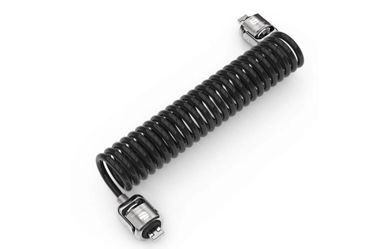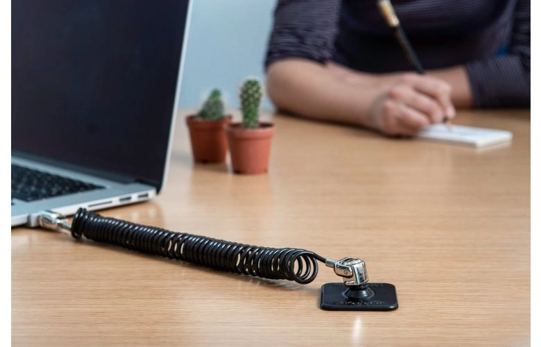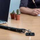 The Universal Dual-Head Keyed Coiled Cable Lock allows you to secure any device while allowing a free manipulation of the object, using the same key to easily lock/unlock both lock heads.