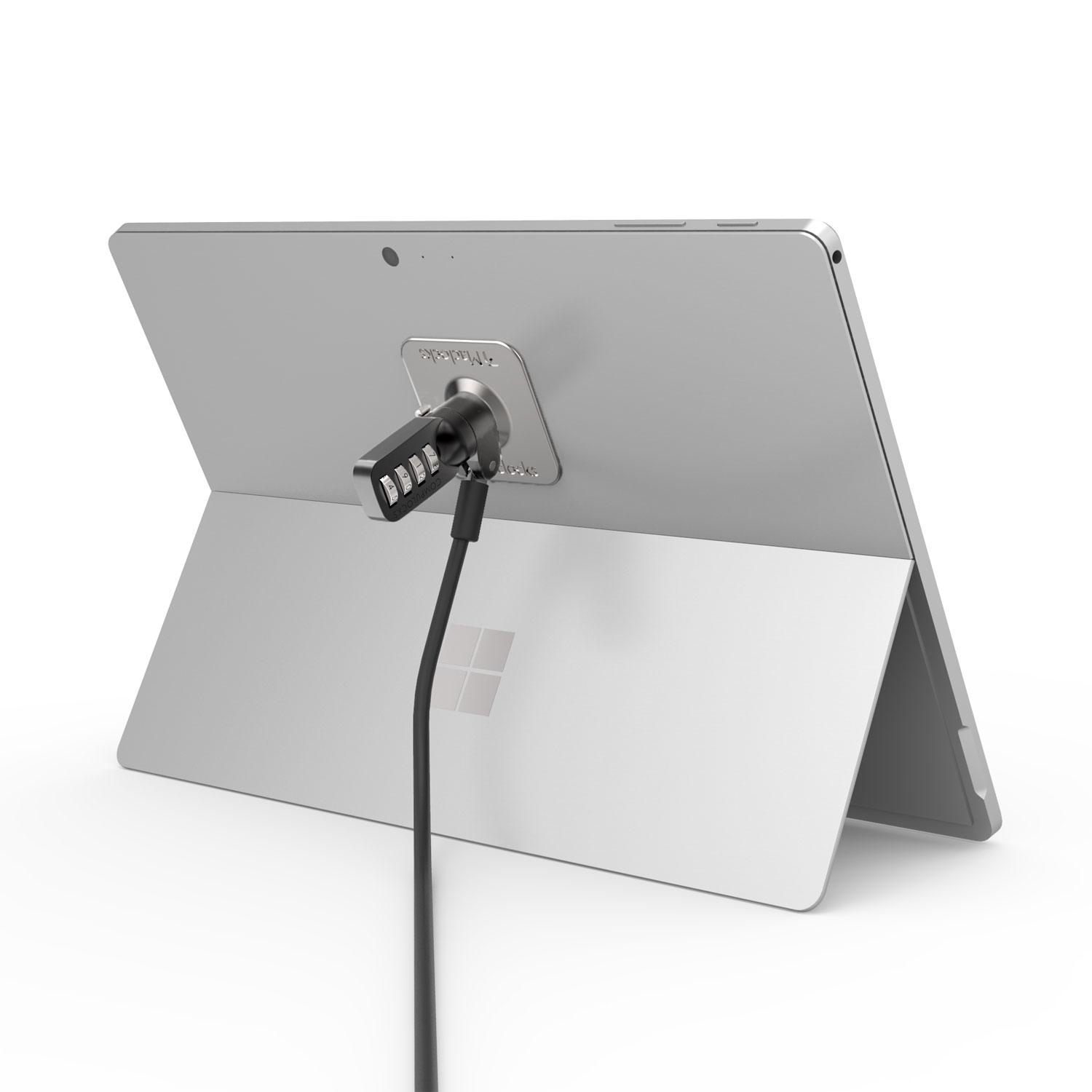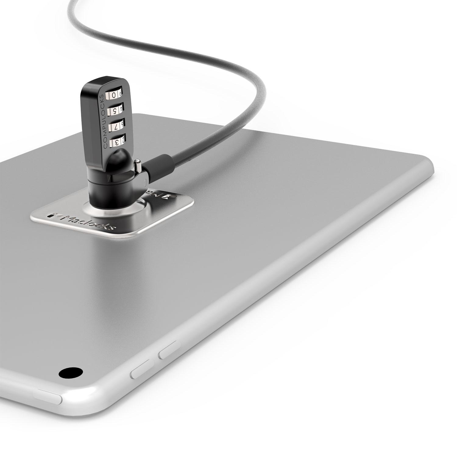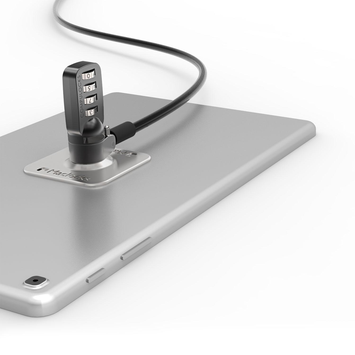 The Universal Tablet Lock Adhesive Security Plate serves as a simple lock for iPads, Galaxy tablets, Surfaces, and other tablets. This two-piece bestseller comprises an industrial-strength adhesive plate with a built-in standard security slot, accompanied by our slim galvanized steel 6ft cable lock. Once the adhesive bond is formed (recommended 10 hours), the plate essentially becomes a permanent solution. You can tether this lock to nearly any solid object using the loop end of the cable.