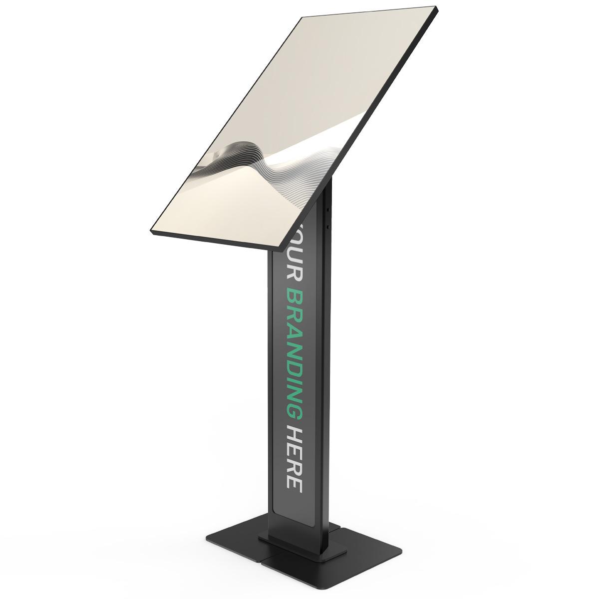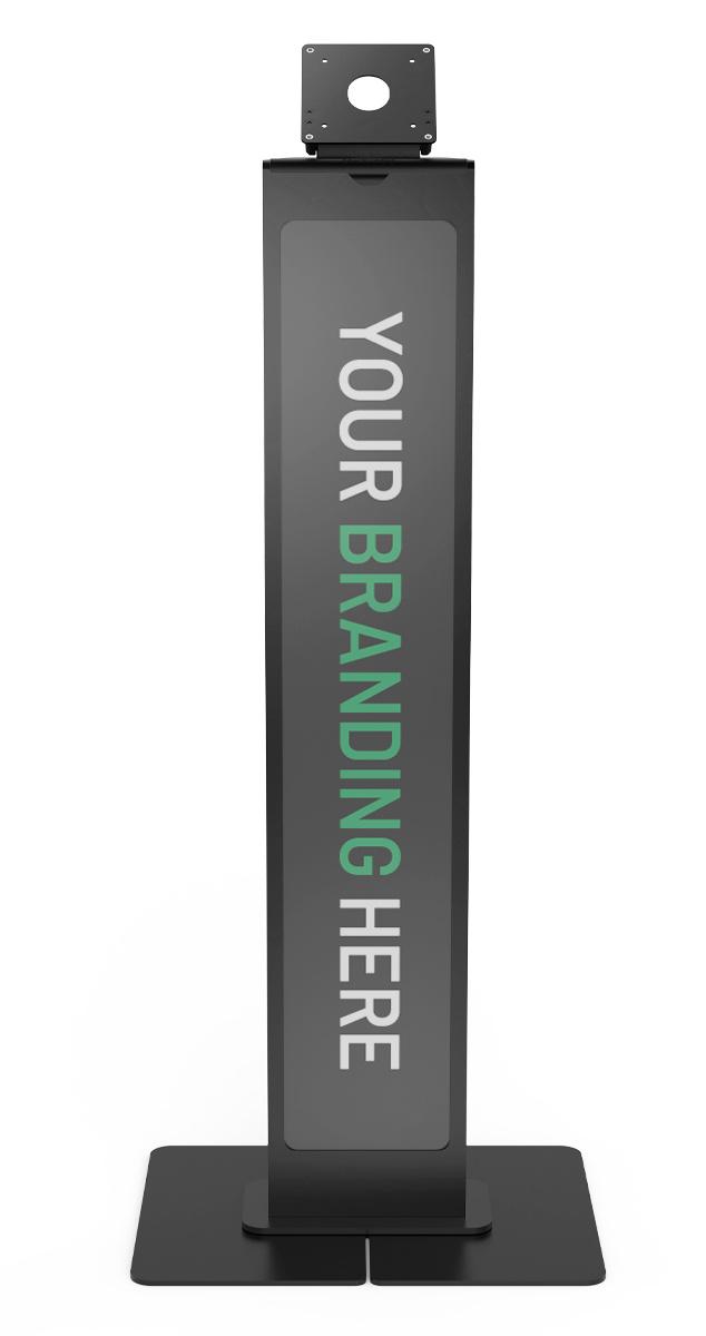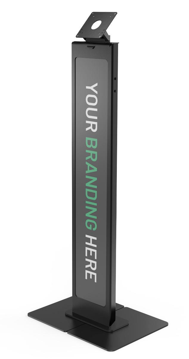 Brand-able Floor Stand is an enclosure stand with space allowing you to put a custom message or branded panel making it a great display solution for stand alone environments.