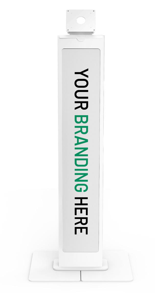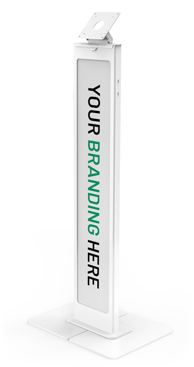 Brand-able Floor Stand is an enclosure stand with space allowing you to put a custom message or branded panel making it a great display solution for stand alone environments.