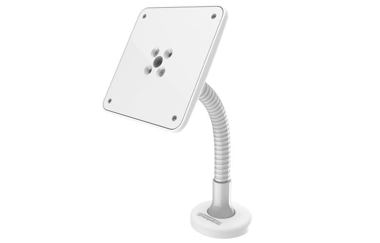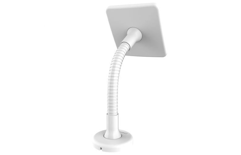 The Flex Arm, a bendable arm, serves as an excellent mounting solution for various environments such as education, healthcare, corporate, retail, and point of sale settings. Our Flex Arm stand is versatile and can be mounted on any flat surface, countertop, or wall, offering a secure interactive display or kiosk option. Its bendable arm is particularly useful for corners and areas with limited counter space. Limited cable management is available through the mount and arm of the stand, suitable for Lightning cables or cable extensions with up to Ø 10 mm. Additionally, there is an adhesive no-screw base add-on available. Max Load: 3lbs / 1.4kg